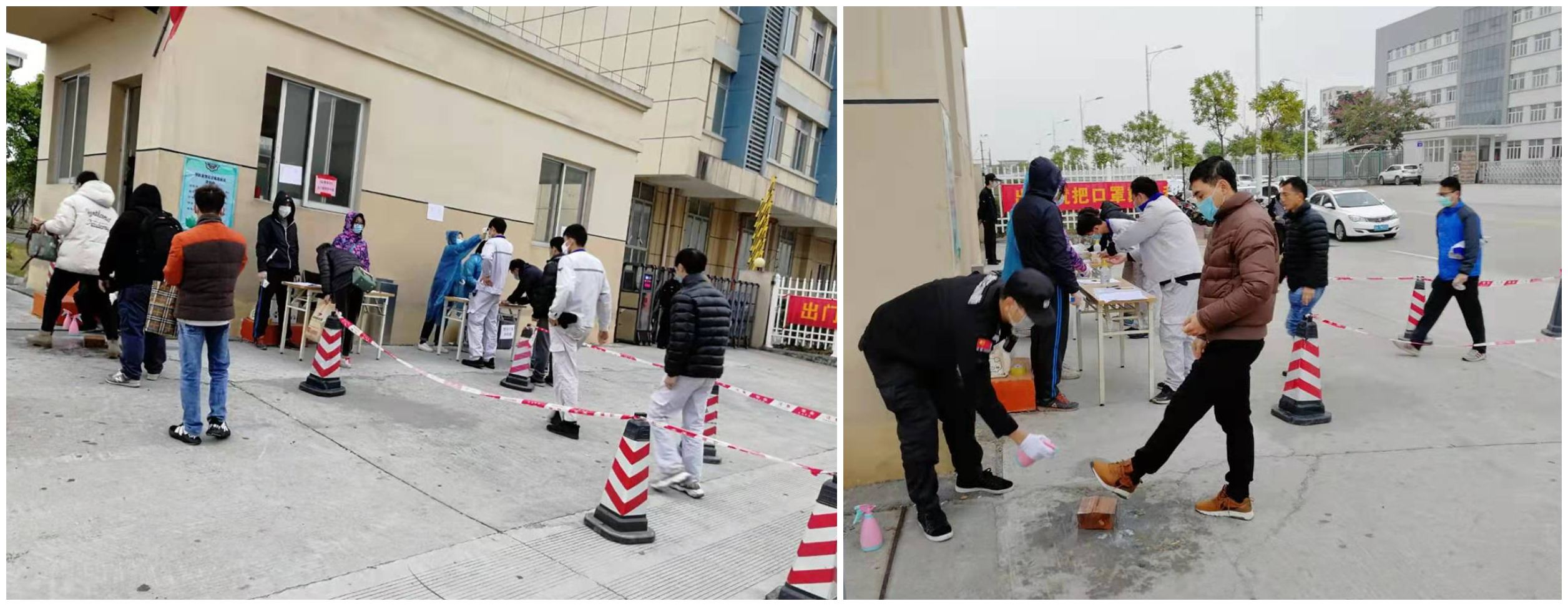 廣州鼎漢生產(chǎn)廠區(qū)入口人員登記,檢測體溫、消毒