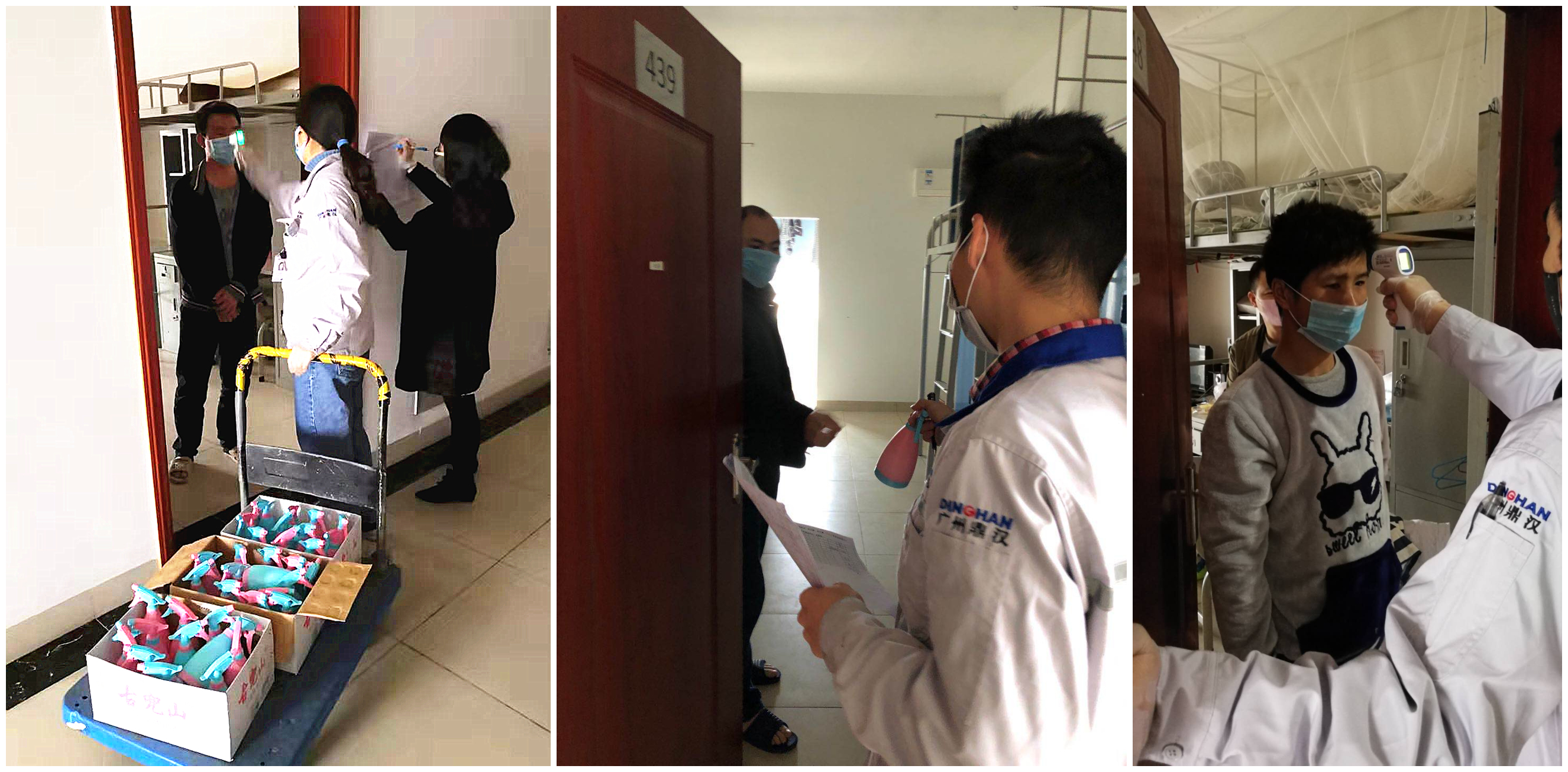 廣州鼎漢職工宿舍體溫檢測,發(fā)放消毒液