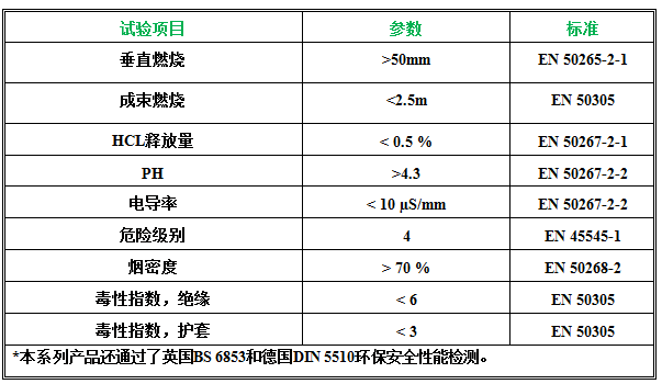 1、EN 50264特殊防火性能鐵路車輛標(biāo)準(zhǔn)壁厚電纜