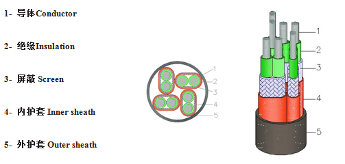 電纜結(jié)構(gòu)示意圖 Diagram of cable construction