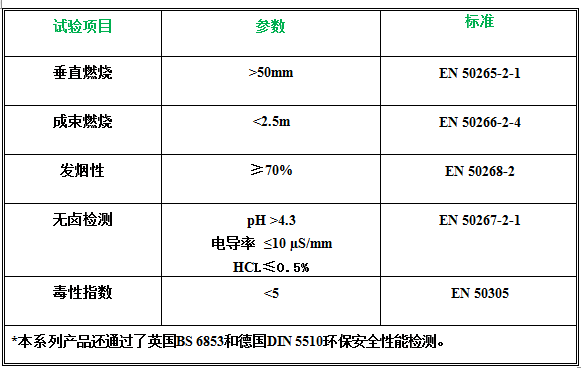 3、EN 50382特殊防火性能鐵路車輛用高溫電力電纜