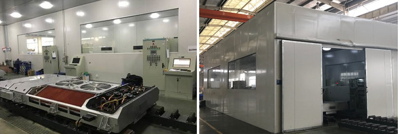 In the spraying laboratory, water-spray test is made for air conditioning units matched with large railway, urban rail, bullet train and G-series high-speed train, so as to ensure that the delivery air conditioning units are tested under the specified test conditions.